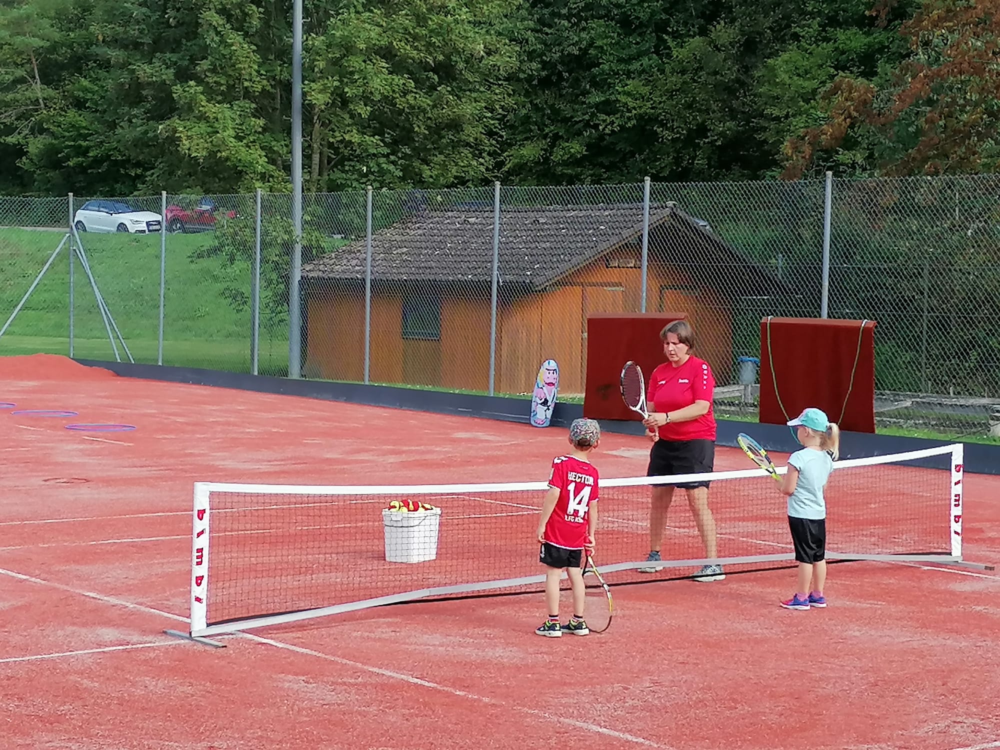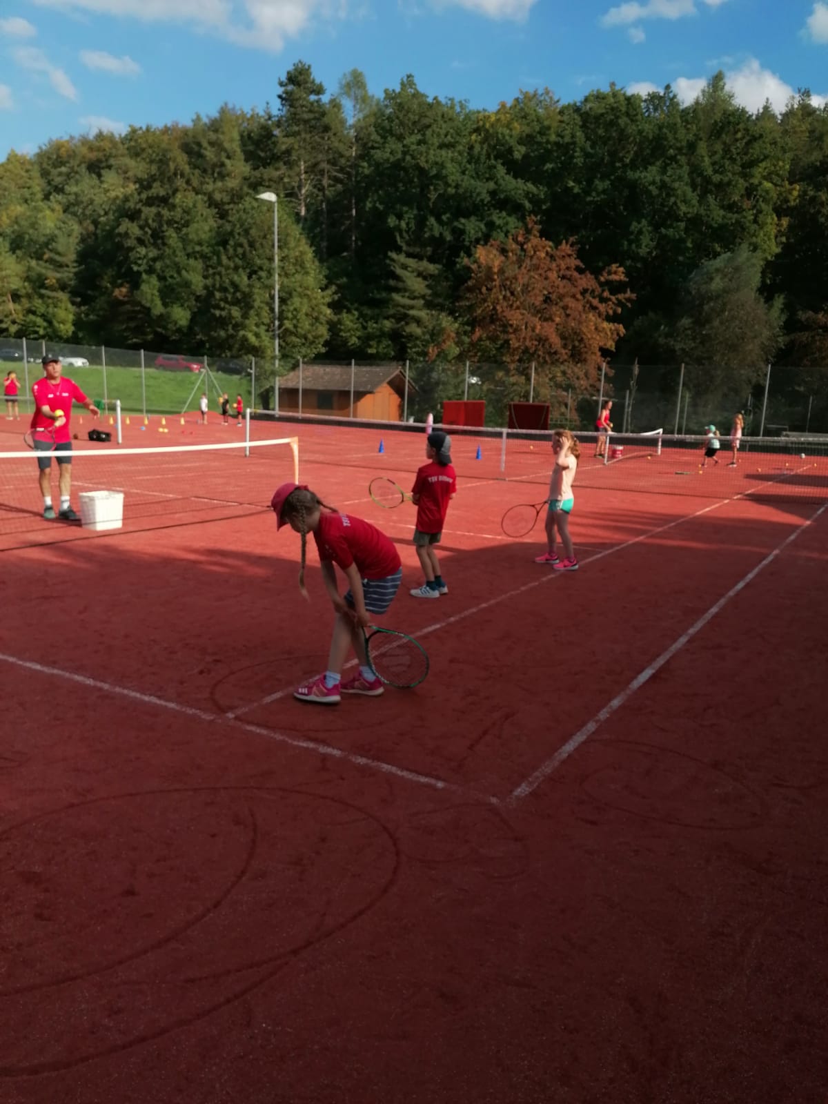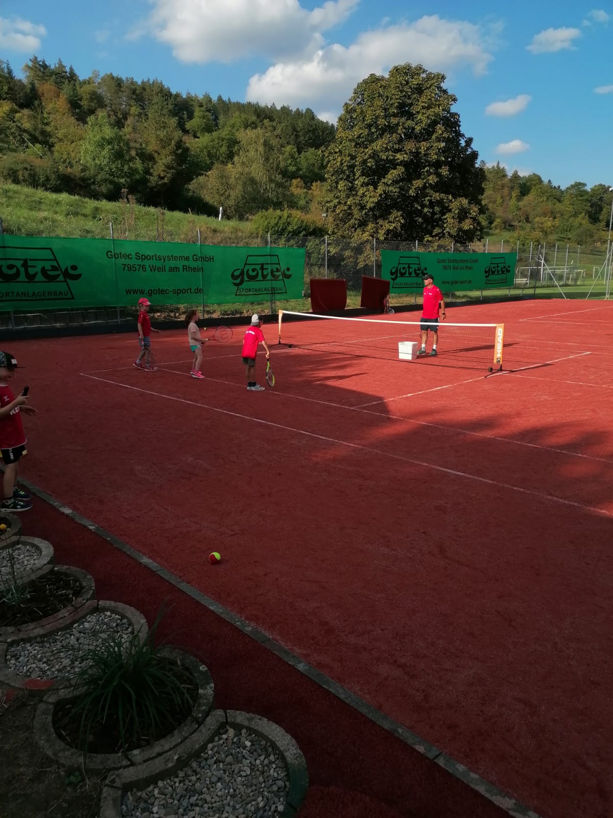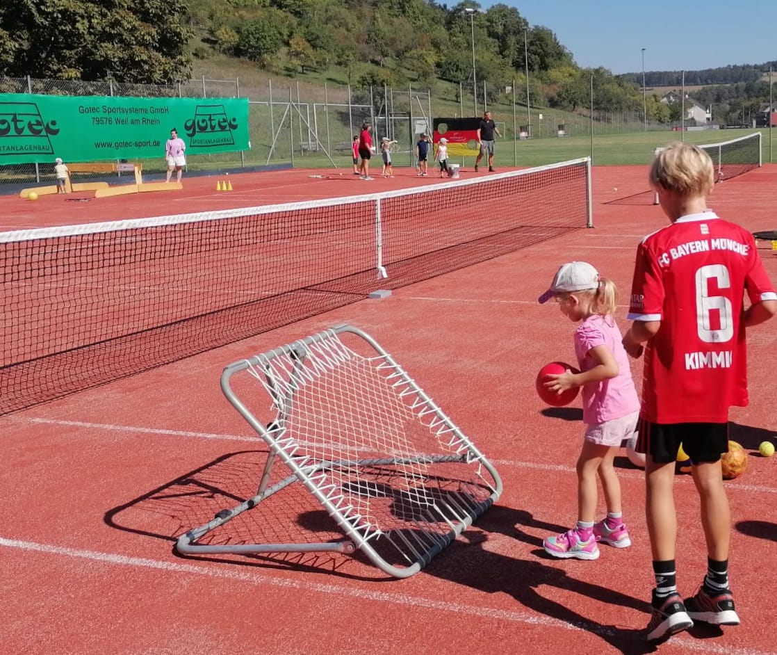 Den Anfang machte am Freitagnachmittag ein offenes Training für alle Interessierten unter dem Motto des DOSB „Sporttage sind Feiertage“. Insbesondere zahlreiche Kindergarten- und Grundschulkinder nutzten das Angebot, bei herrlichem Wetter zum Teil erste Erfahrungen mit der gelben Filzkugel zu sammeln. Nach gemeinsamen Aufwärmspielen absolvierten die Kinder in Kleingruppen bei mehreren Übungsleitern verschiedene Übungen, bei denen Low-T-Anlagen, Kleinfeldnetze und zahlreiches Ball- und Kleinmaterial für große Abwechslung sorgten. Dass die Kinder dabei viel Spaß hatten, zeigte unter anderem die Tatsache, dass viele der Anwesenden bis in die Abendstunden auf der Anlage blieben und das vorhandene Material auch nach dem offiziellen Training weiter nutzten. Auch von Jugendlichen und Erwachsenen wurde das Angebot der Abteilung wahrgenommen, so dass die neuen Plätze bis zum Einbruch der Dunkelheit durchgehend belegt waren und die erfreulich vielen Gäste den Tag bei gemütlichem Beisammensein ausklingen ließen.